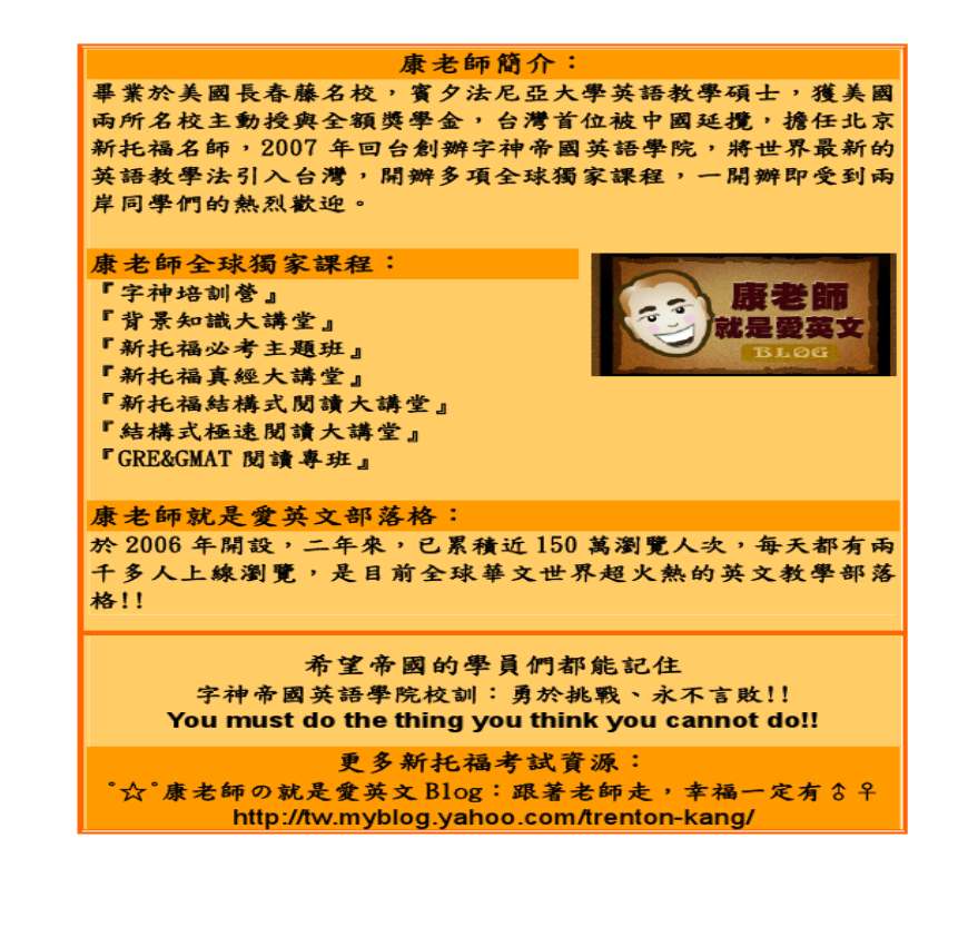 《新托福完整版》电子版汇总!新托福是大家备考托福时必备的一份词 并同时给出了 TPObIBT历年汇总(宝机经单词简洁打印版) b'>发贴时间:年月日托福(含全球最完整的机经单词) 元 康老师新TOEFL宝书 康康老师师新TTOEFFL橘宝书书前言準備新托福考試單字不是萬能但不背單字萬萬不能。
