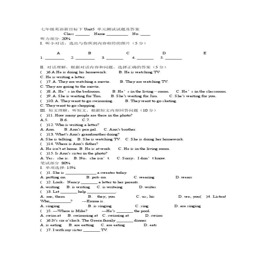 新目标七年级下Unit5单元检测题资料下载,喜欢的朋友可以下载收藏!