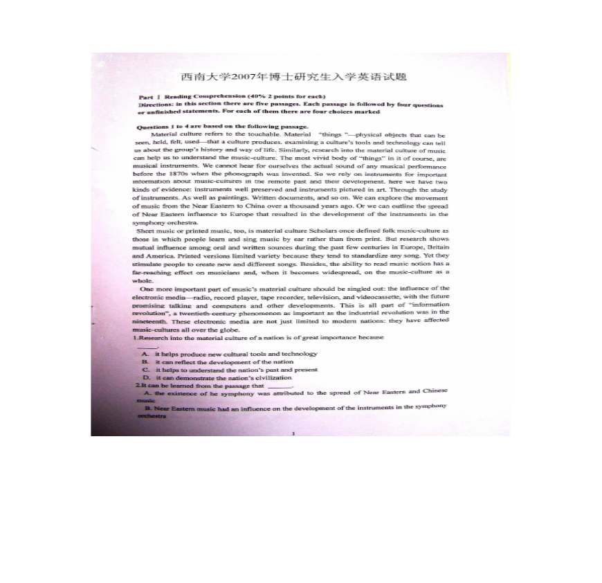 西南考博英语真题2007年资料下载,喜欢的朋友可以下载收藏!