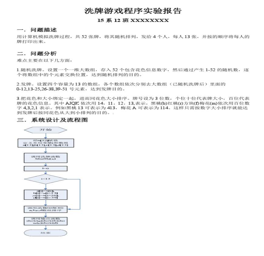 洗牌游戏程序实验报告资料下载,喜欢的朋友可以下载收藏!