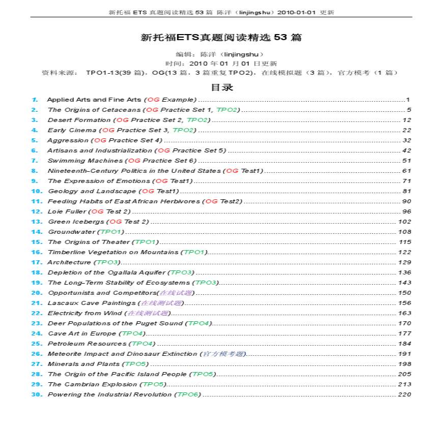 新托福ETS真题阅读精选53篇.pdf 免费下载