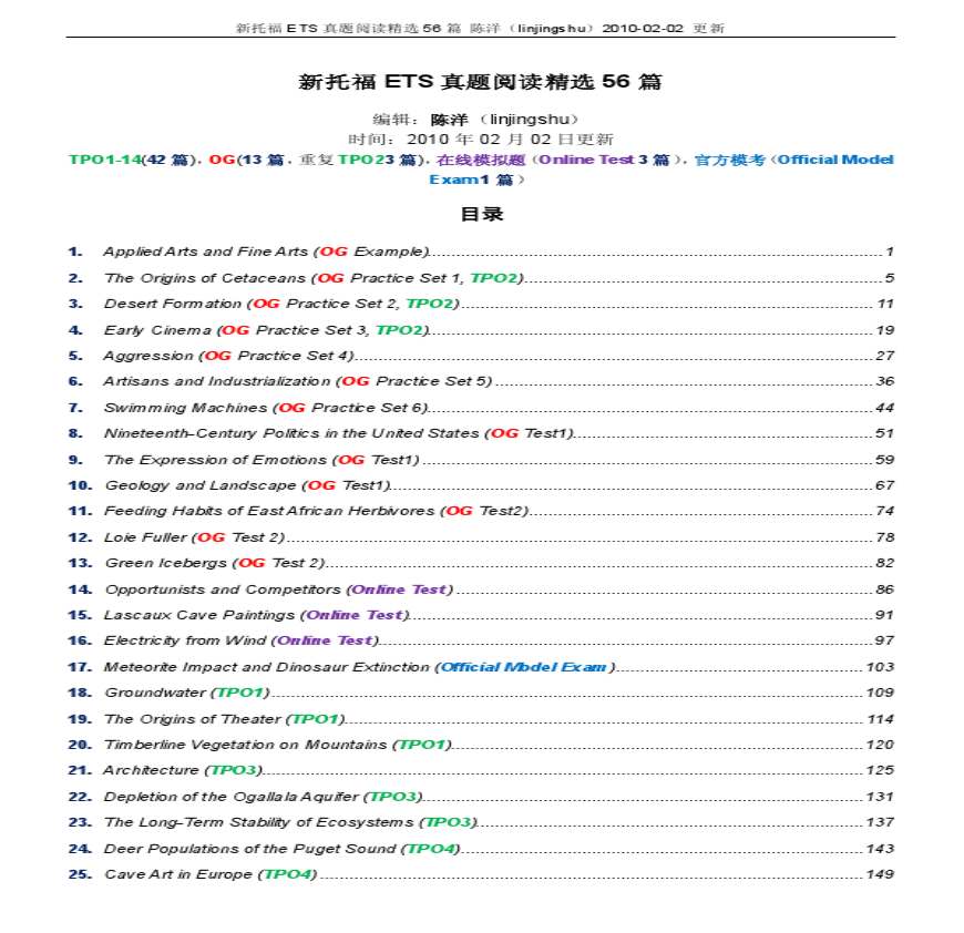 ( 陈洋()更新新托福新托福ETS真题阅读精真题阅读精选选篇篇编辑:陈洋时间:年月篇,重复TPO篇篇,在线模拟题在下载_爱问 学习资料 PDF下载久久 大小:MB语言:简体中文更新时间:年月日简介:。
