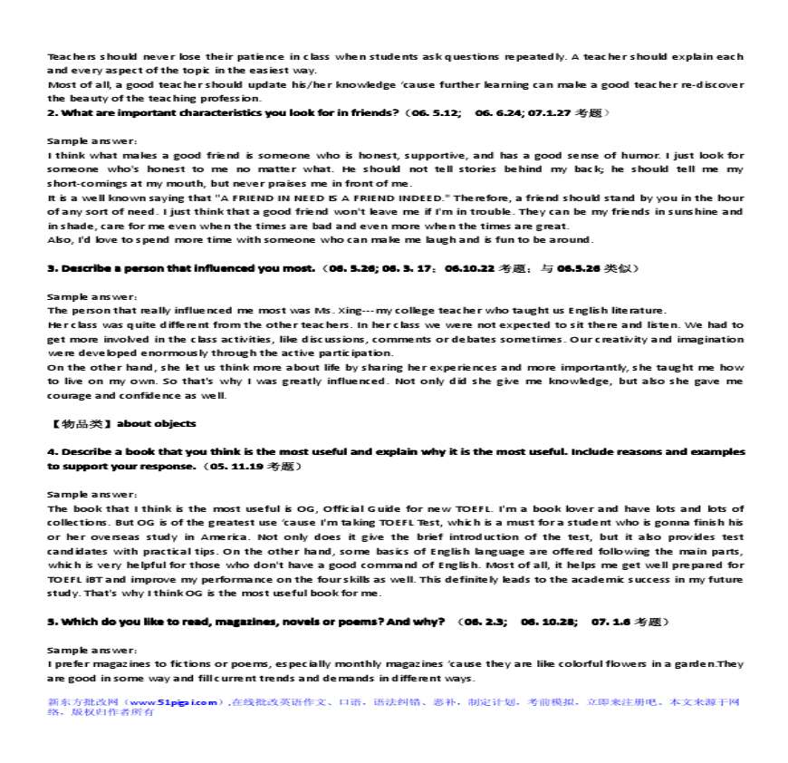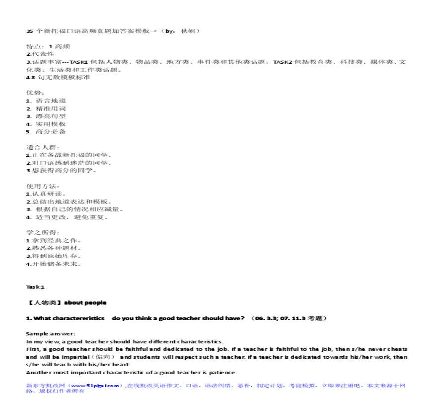 新托福口语高频真题加答案资料下载,喜欢的朋友可以下载收藏!