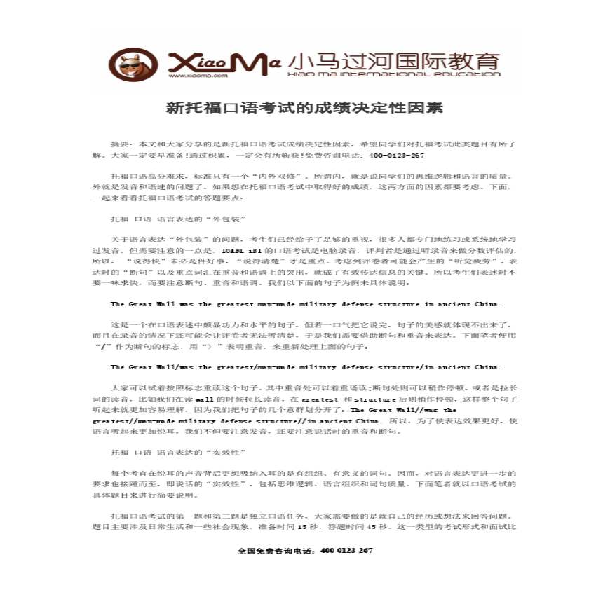 新托福口语考试的成绩决定性因素资料下载,喜欢的朋友可以下载收藏!