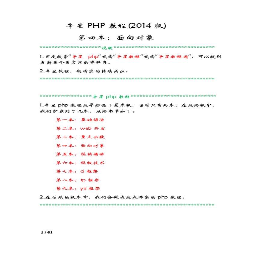 > 辛星PHP教程(2014版)第四本即面向对象