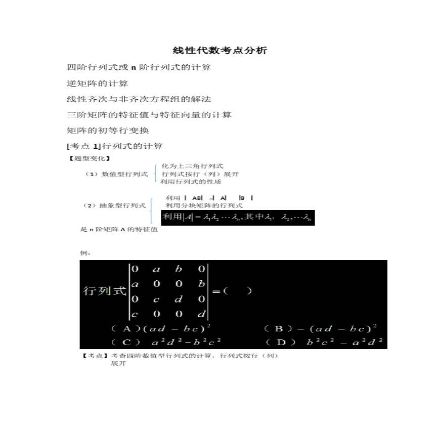 线性代数考点分析资料下载,喜欢的朋友可以下载收藏!