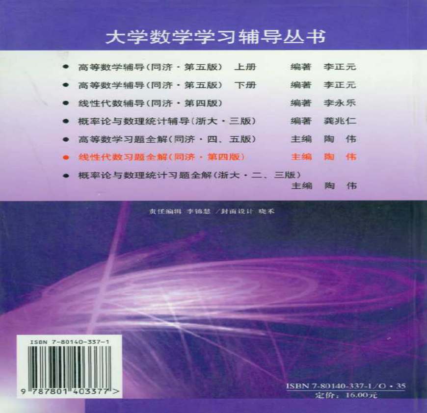 格式:全部PDFDOC质量分第版(上海交通)[]共页上海交通第三版 计算下列行列式: xx; ; xx xx ; x x x; x xx x xx 同济版第二章共页第 版 上海交通 共页课后答案共页 质量分同济版第四章共页第四章第四章 向量组的线性相关性向量组的线性相关性设设,TTT, , ,, , ,, , 求求及及 TT, , , , T, , T介绍共页 查看全部 简介:是年大连理工大的图书,作者是王艳芳,李海燕。