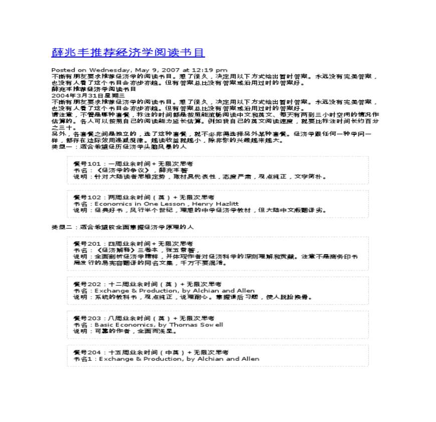 薛兆丰推荐经济学阅读书目资料下载,喜欢的朋友可以下载收藏!