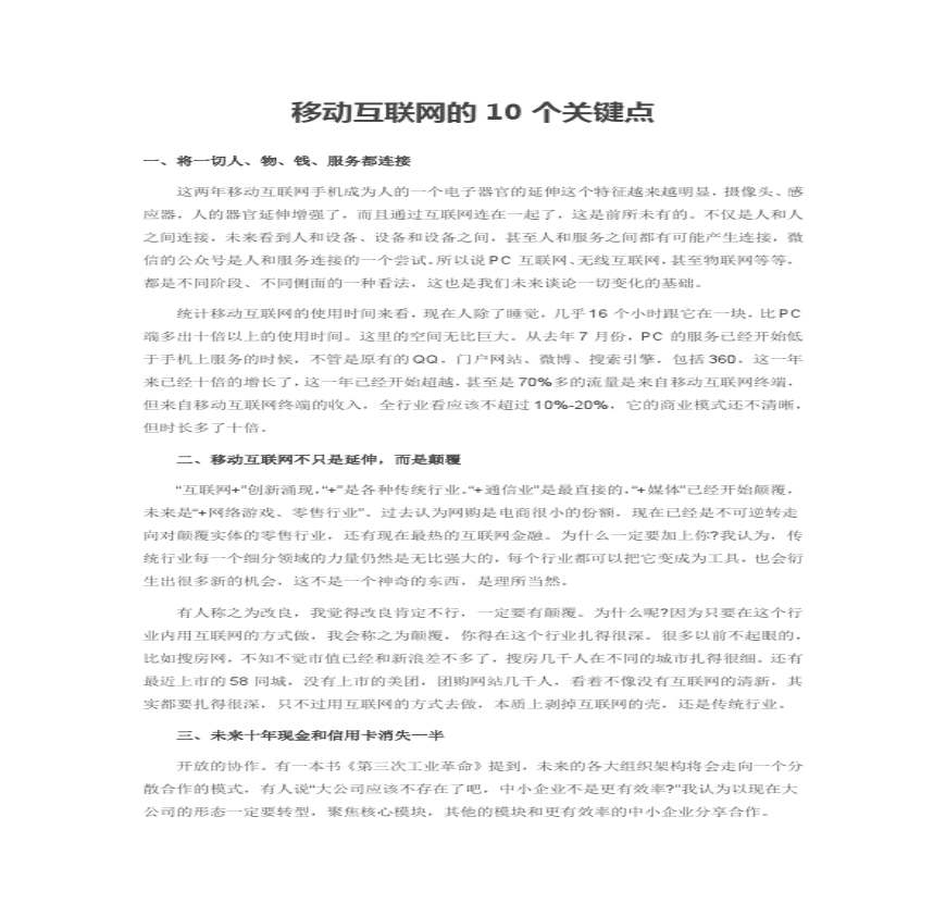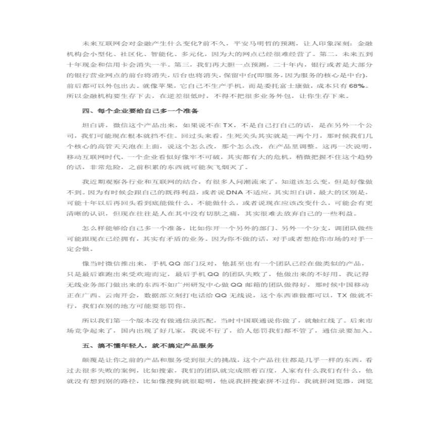 马化腾眼中移动互联的个关键点 一、将一切人、物、钱、服务都连接 这两年移动互联手机成为人的一个电子器官的延伸这个特征越来越明显,摄像头、感应 来自: 互联思维发布于: :: 浏览() 评论() 赞() 收藏() 一向低调的小马哥在媒体面前总是显的很低调,虽然他可能是众多创业