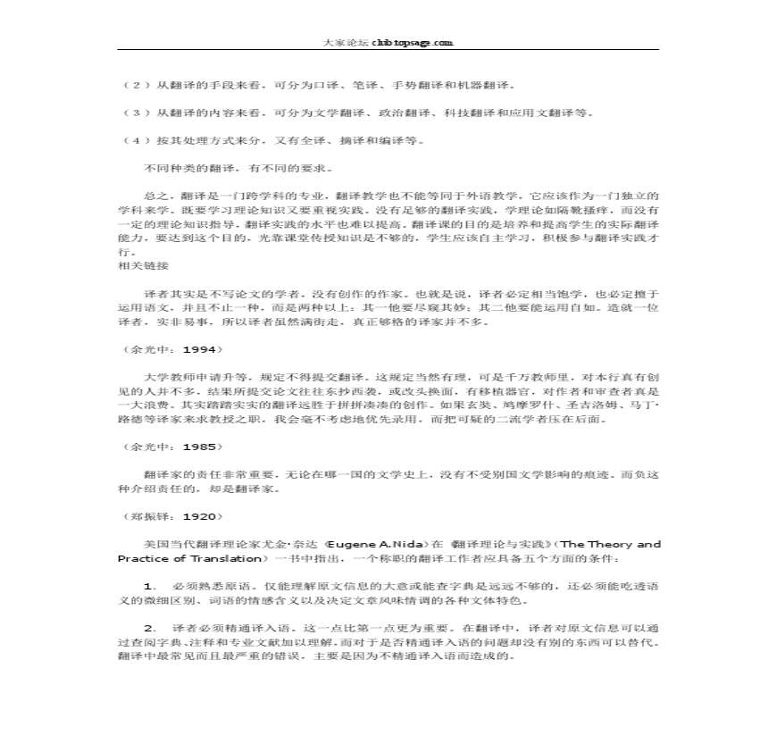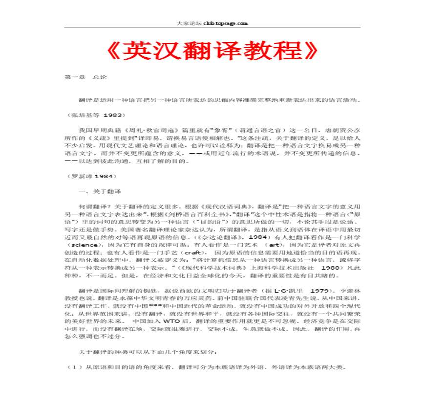 当前位置:英语下载 口英语下载口译笔译下载_Wr模板哦哈哈哈哈《英汉翻译教程》第一章总论翻译是运用一种语言把另一种语言所表达的思维内容准确完整地重新表达出来的语言活动张培基等 学习资料页 第一章总论翻译是运用一种语言把另一种语言所表达的思维内容准确地重新表达翻译应当把原文的本意,完全正确的介绍给中国读者,使中国读者得到 _百科作者:张培基时间:年月日b 元