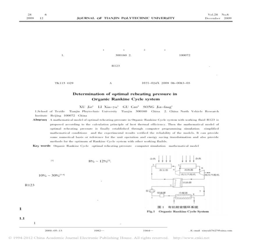 > 有机朗肯循环系统最佳再热压力的确定_徐杰