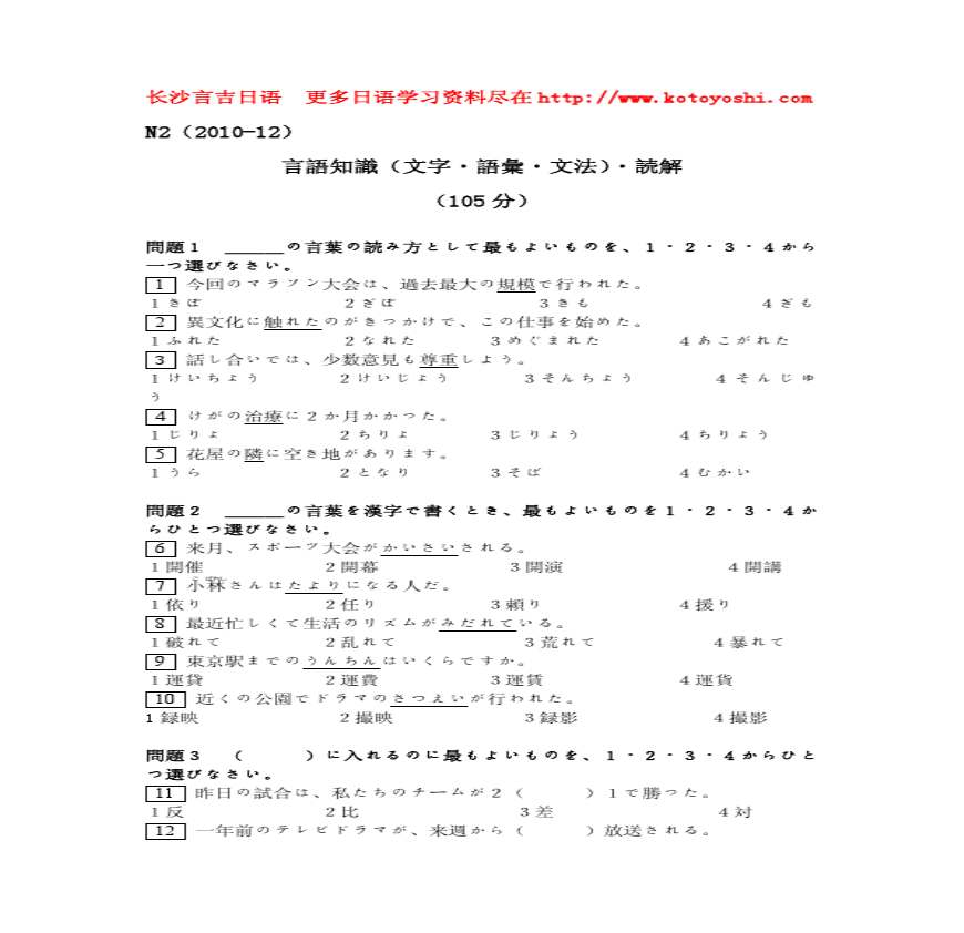 言吉日语2010年12月N2真题.pdf 免费下载