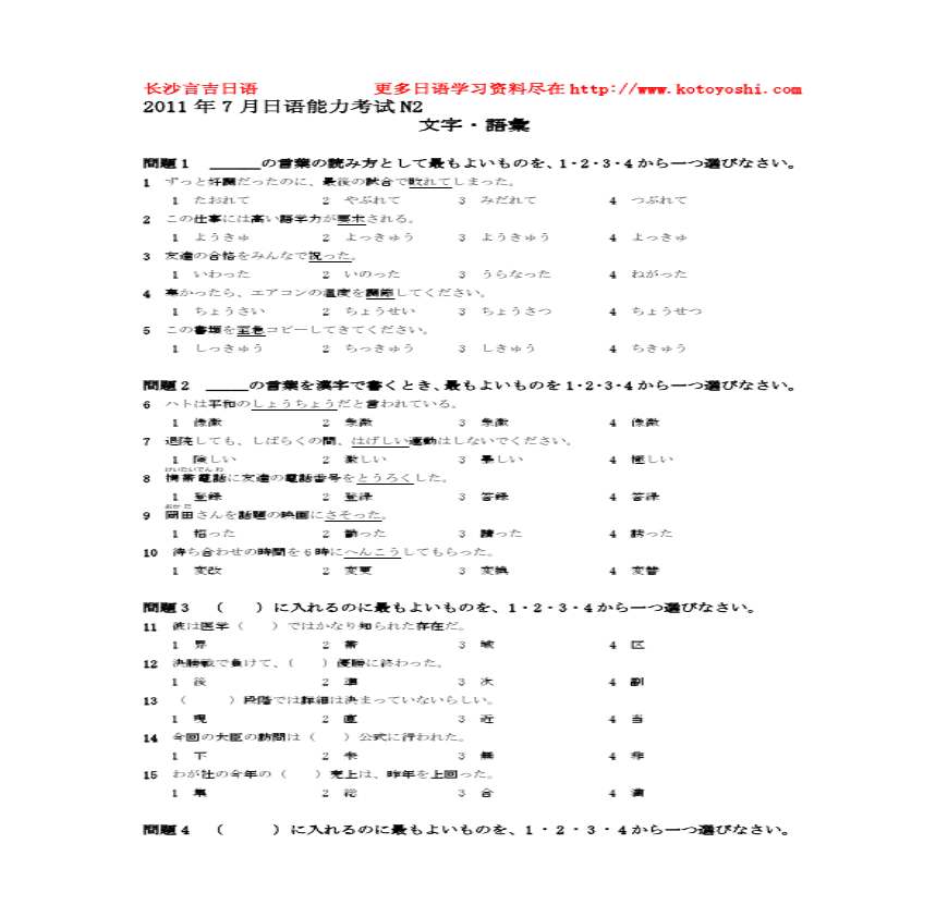 言吉日语2011年7月N2真题资料下载,喜欢的朋友可以下载收藏!