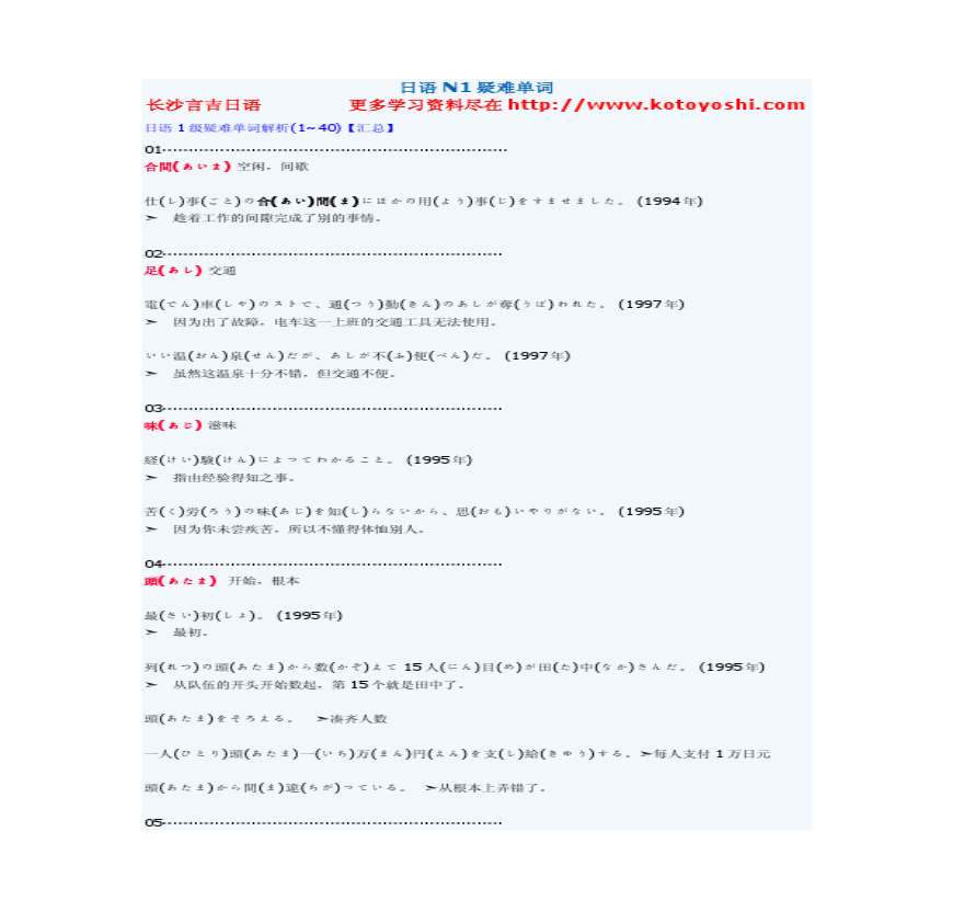 言吉日语N1疑难单词资料下载,喜欢的朋友可以下载收藏!