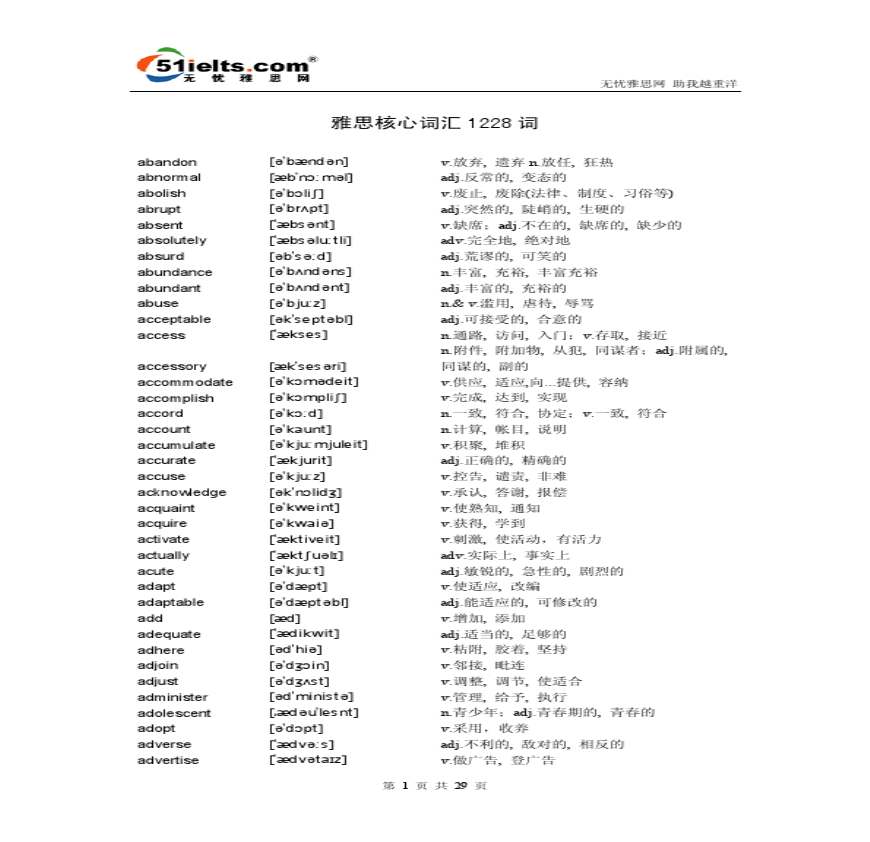 雅思核心词汇1228词 (1)资料下载,喜欢的朋友可以下载收藏!