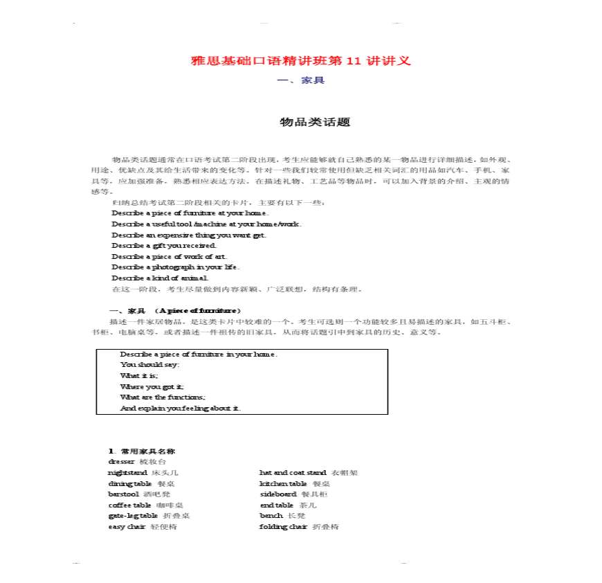 雅思基础口语精讲班第11讲讲义资料下载,喜欢的朋友可以下载收藏!