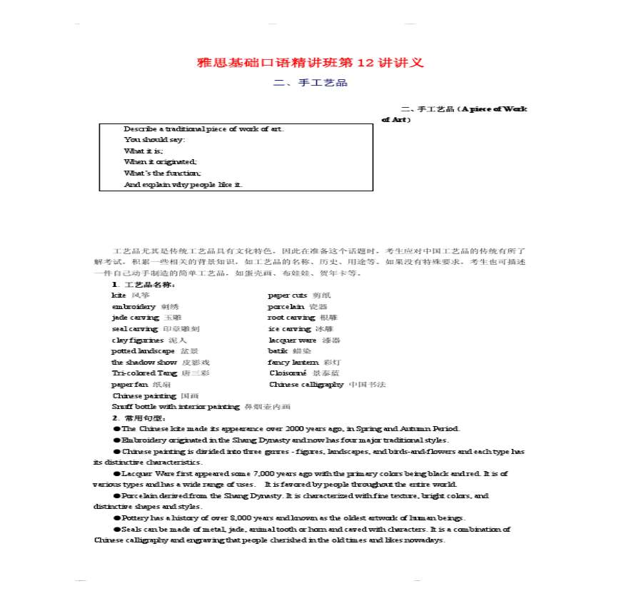 雅思基础口语精讲班第12讲讲义资料下载,喜欢的朋友可以下载收藏!
