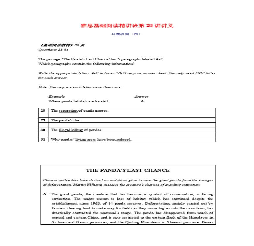 雅思基础阅读精讲班第20讲讲义资料下载,喜欢的朋友可以下载收藏!