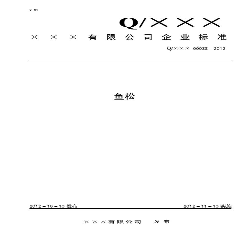 鱼松企业标准备案产品标准编写执行标准资料下载,喜欢的朋友可以下载收藏!