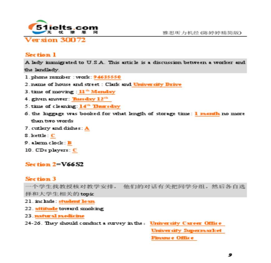 > 雅思听力机经陈婷婷精简