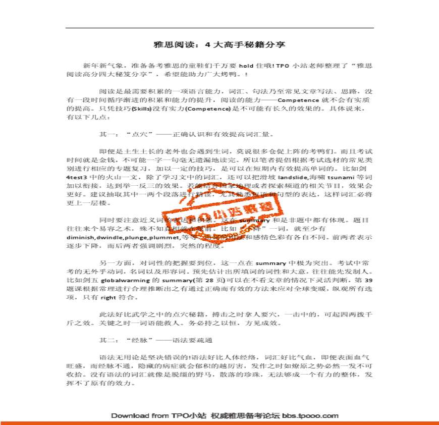 提供高分必备“神技”文档下载,摘要:高分必备“神技”如何才能提高成绩?这是很多在为雅思阅读考试备考的烤鸭们都十分关心的问