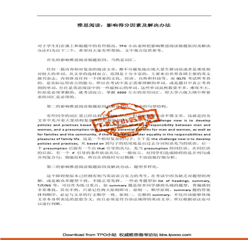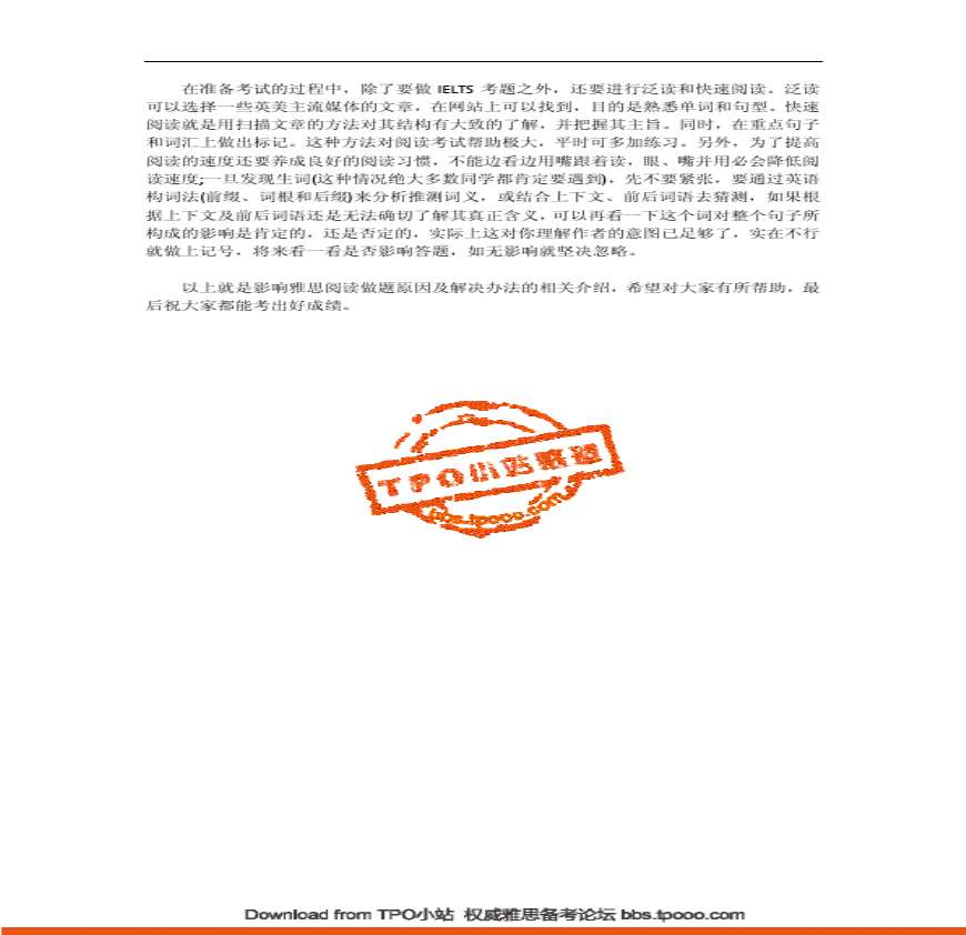 提供文档下载,摘要:对于学生们在课上和做题中的有些情况,TPO小站老师把影响雅思阅读做题原因及