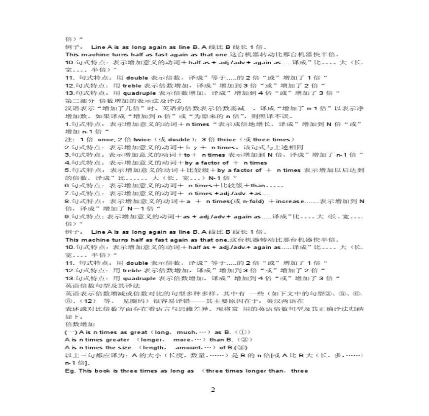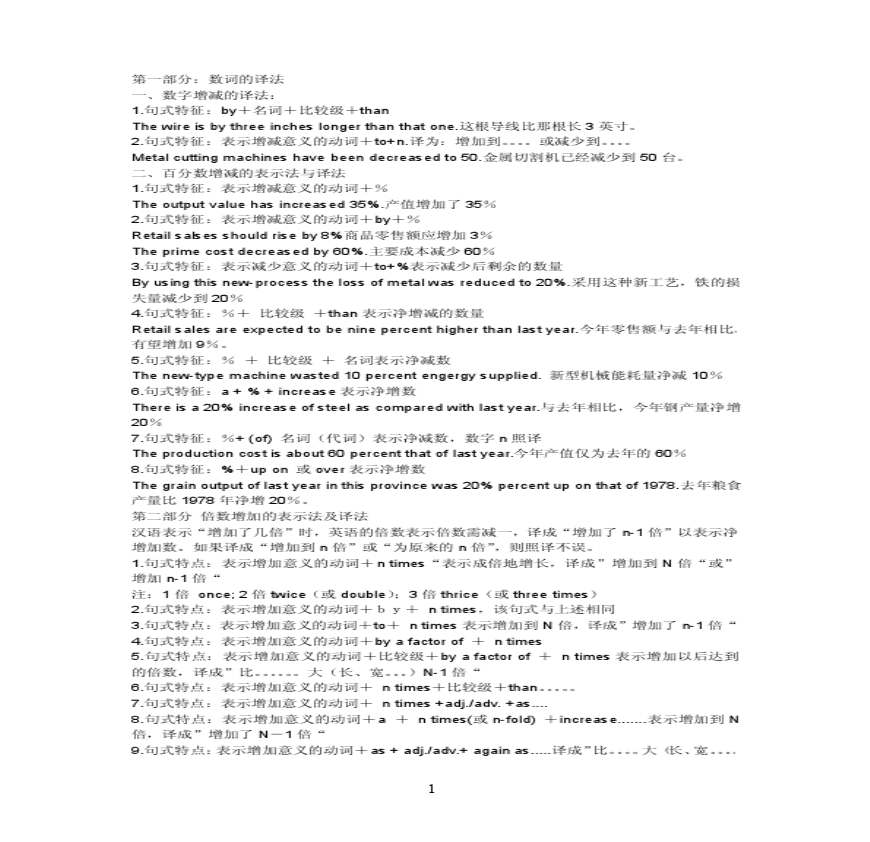第一部分:数词的译法一、数字增减的译法:句式特征:b+名词+比较级+T r b r r 这根导线比那根长英 {{$N := (INJECT_INDEX $ 学习资料 很容易译错其主要原因在于:两语在表述或对比倍数方面存在着语言与思维差异。