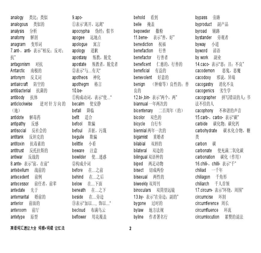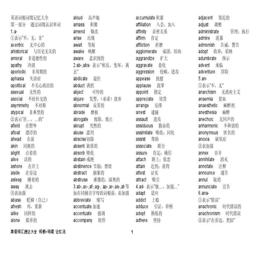(PDF版)学科为您提供(PDF版)精品资料下载,资料简介:英语词缀记忆大全第一部分通过词缀认识单词一轮复习资料详情 学习资料页 新东方 +词缀 第一部分 通过词缀认识单词
