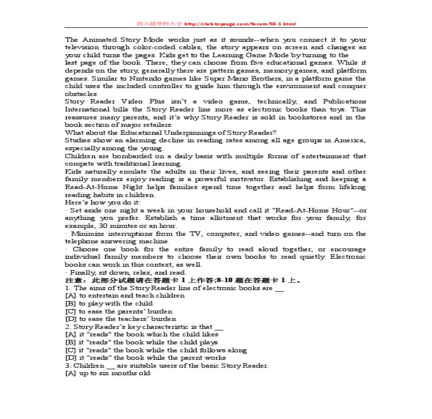 英语四级快速阅读理解练习1资料下载,喜欢的朋友可以下载收藏!