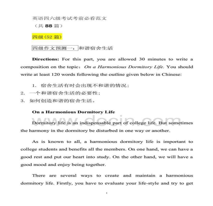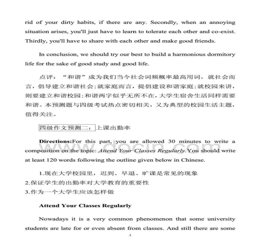 考试考前必看(共)四级篇四级作文预测一:和谐宿舍生活Dr:Frrrr:OHrDr 学习资料
