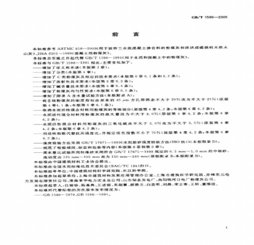 > 用于水泥和溷凝土中的粉煤灰GBT 1596-2005