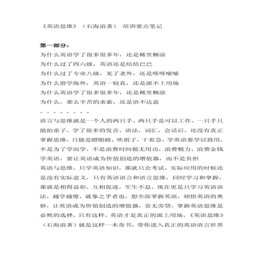 《英语思维》(石海浪著) 培训要点笔记 PDF.pdf 免费下载