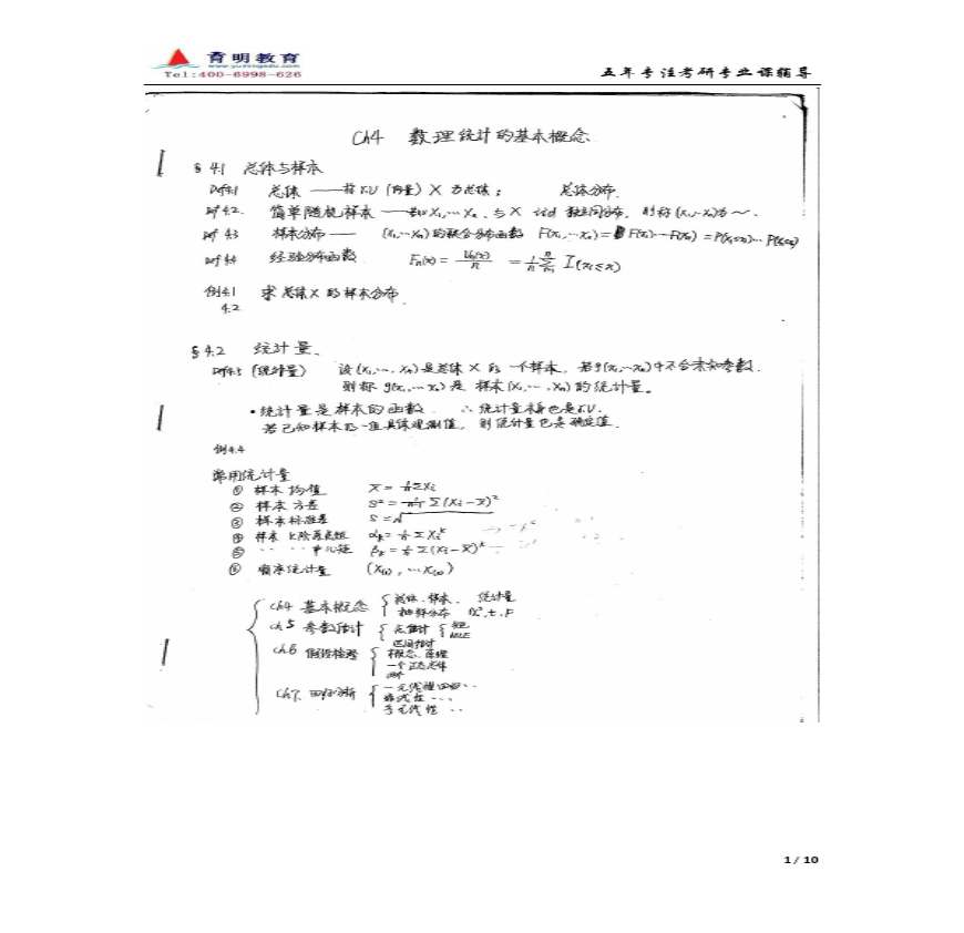 > 袁荫棠《概率论与数理统计》考研笔记(育明教育)