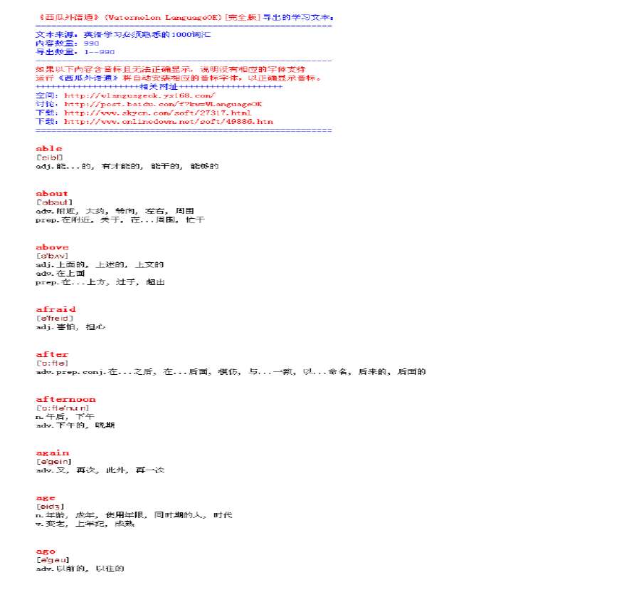 英语学习必须熟悉的1000高频词汇资料下载,喜欢的朋友可以下载收藏!