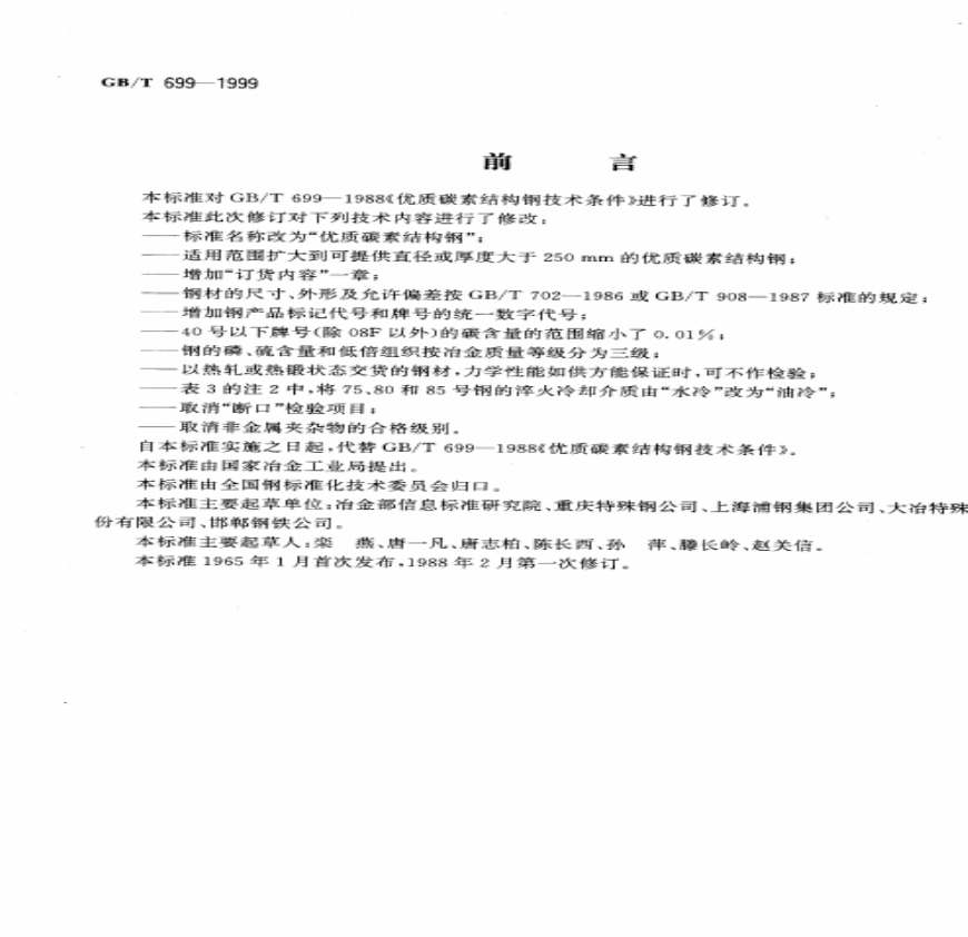 优质碳素结构钢 技术条件 GBT 699-1999.pdf 免费下载
