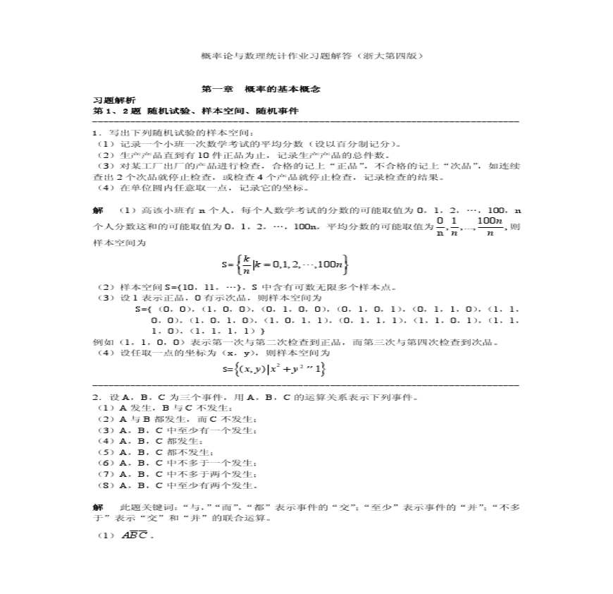> 浙大《概率论与数理统计(第四版)简明本》盛骤著_课后习题解答