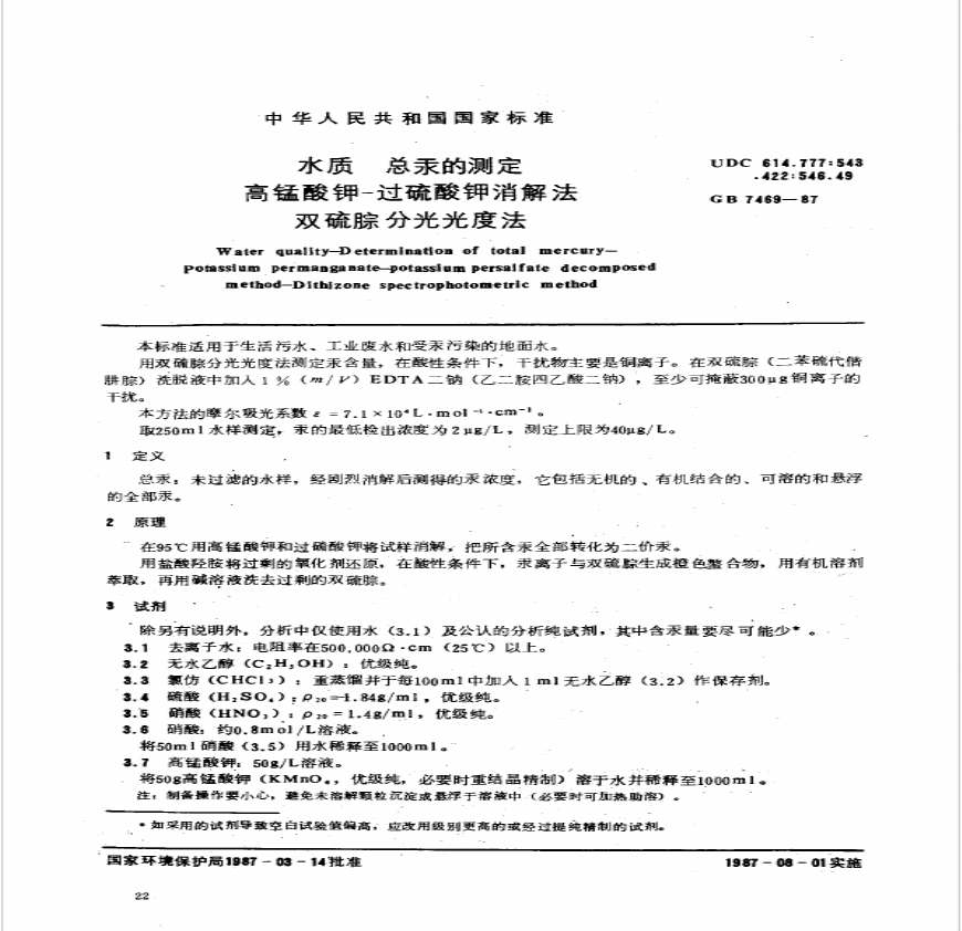 GB-T 7467-87 水质 六价铬的测定 二苯碳酰二肼分