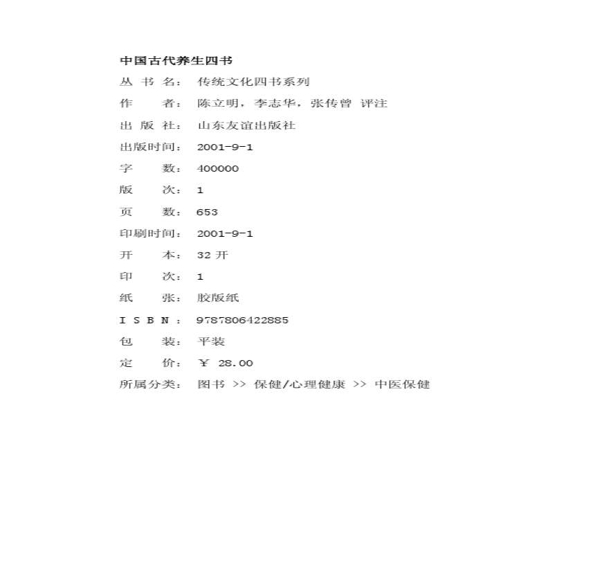 中国古代养生四书·陈立明资料下载,喜欢的朋友可以下载收藏!