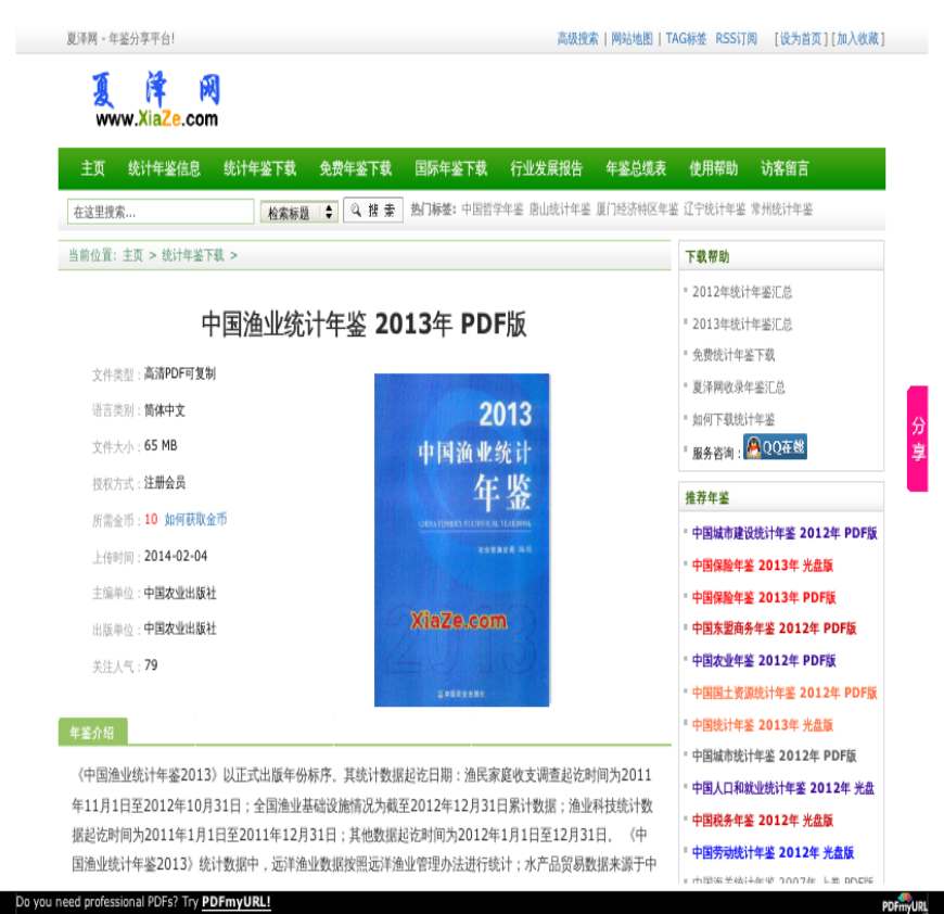 中国渔业统计年鉴 2013年 PDF版资料下载,喜欢的朋友可以下载收藏!