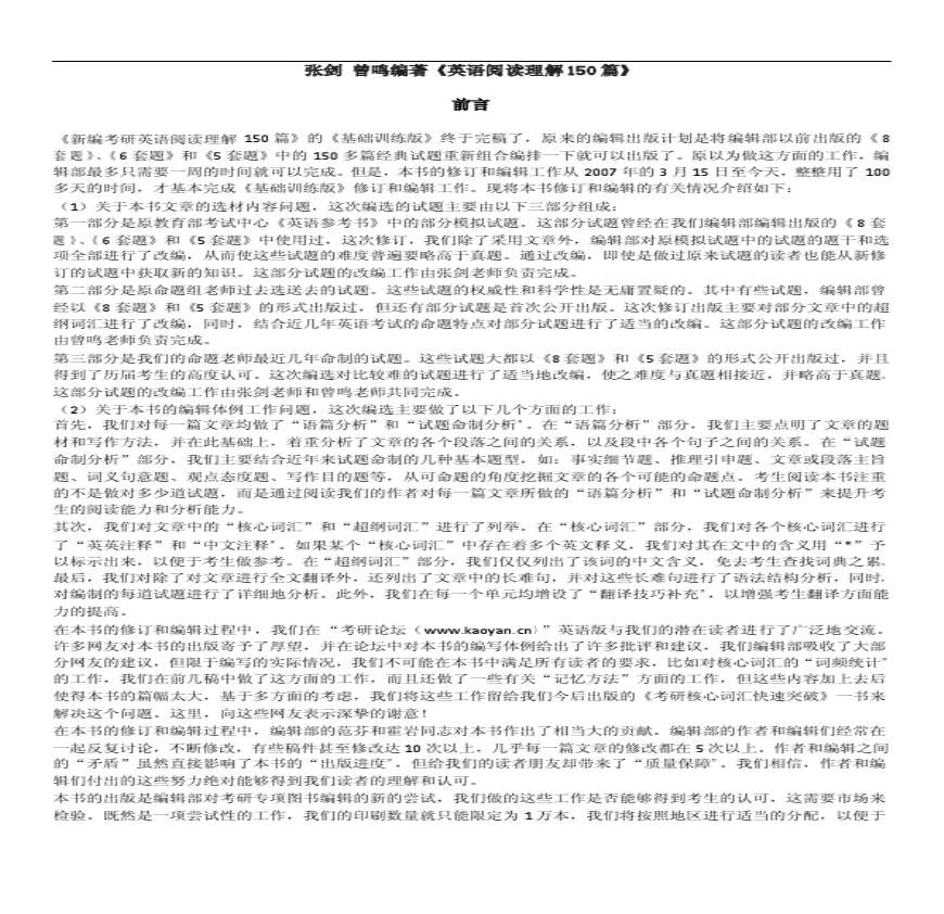张剑_曾鸣编着《英语阅读理解150篇》资料下载,喜欢的朋友可以下载收藏!