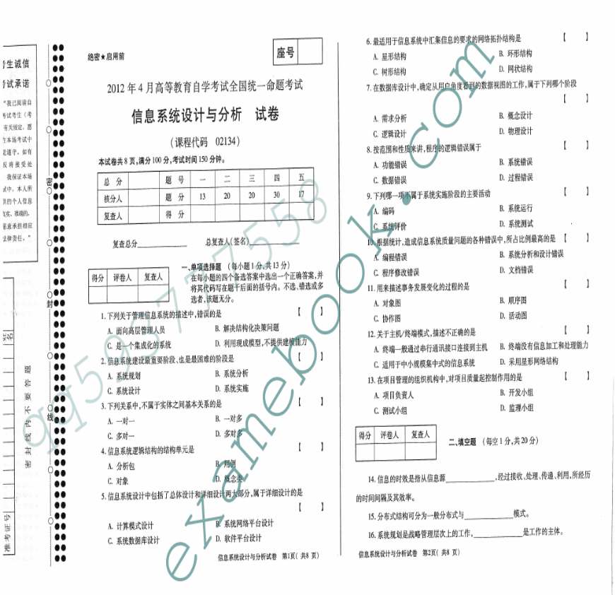 【生】历年栏目主要提供信息系统设计与分析、、历年及答案。