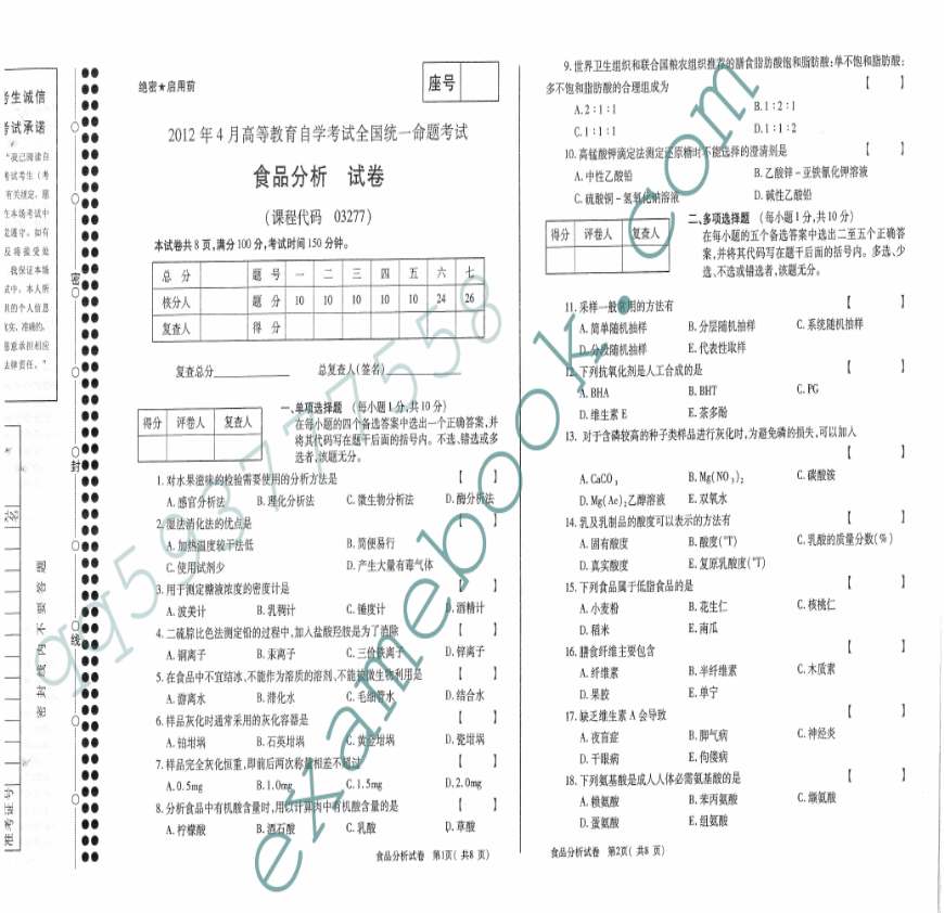自考03277食品分析-2012年4月真题-1.pdf 免费下载