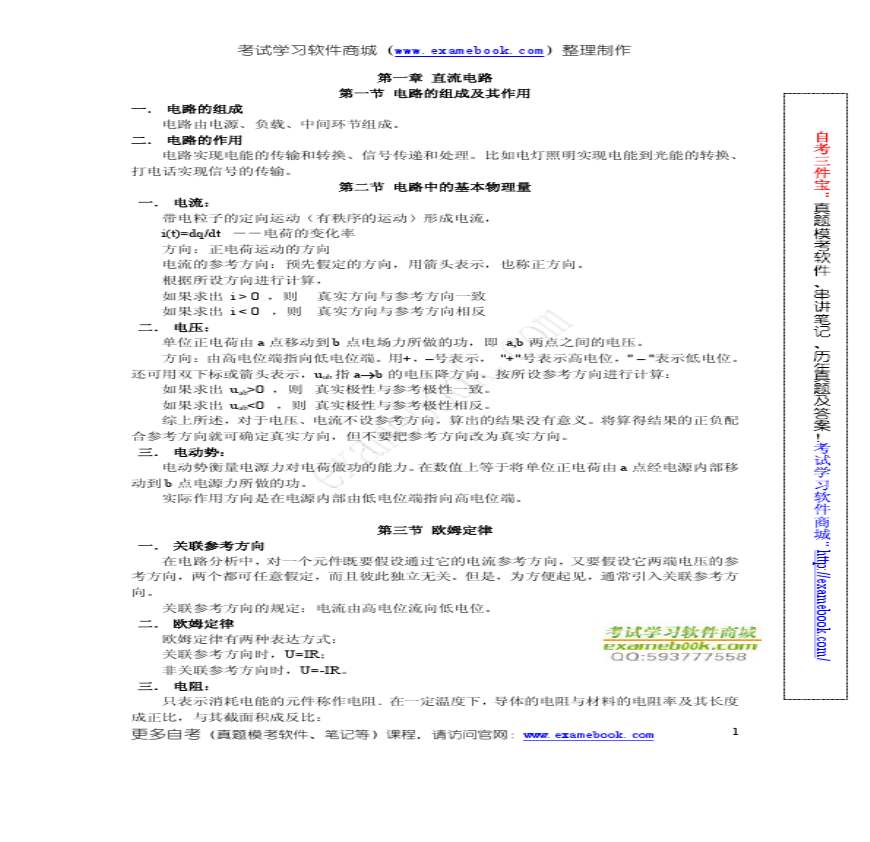 自考笔记-02187电工与电子技术(串讲)01.第一章 直流电路资料下载,喜欢的朋友可以下载收藏!