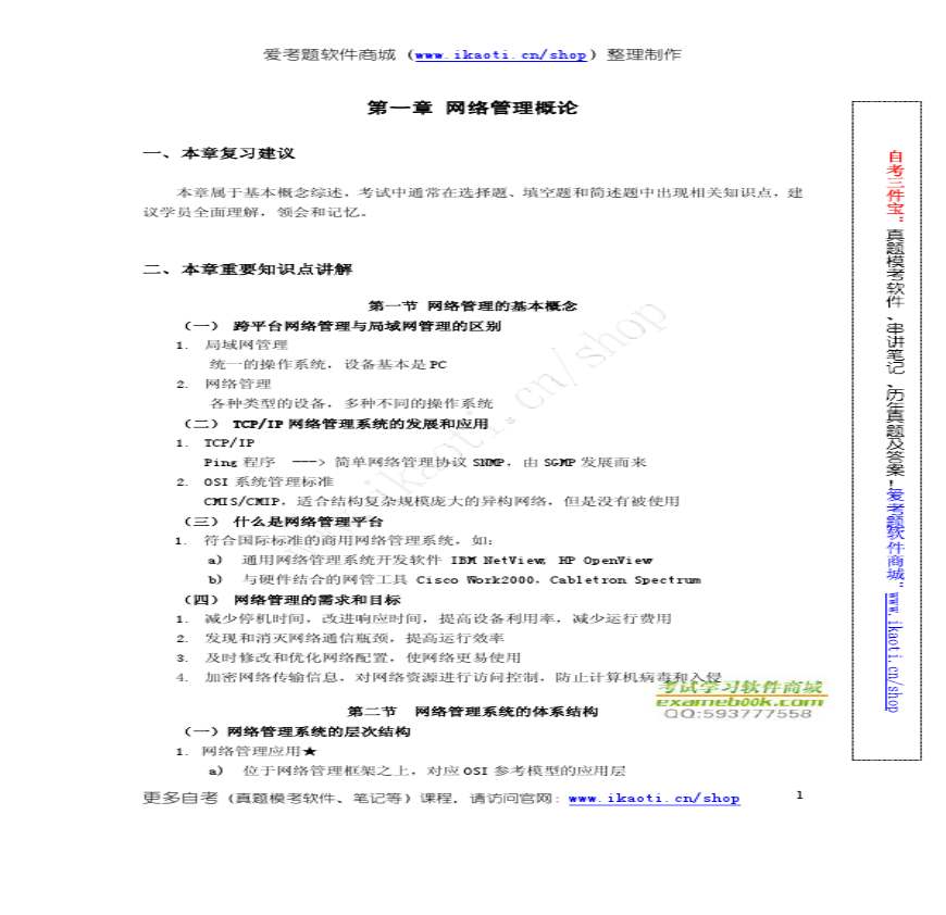自考串讲笔记01.02379计算机网络管理-第一章 网络管理概论资料下载,喜欢的朋友可以下载收藏!