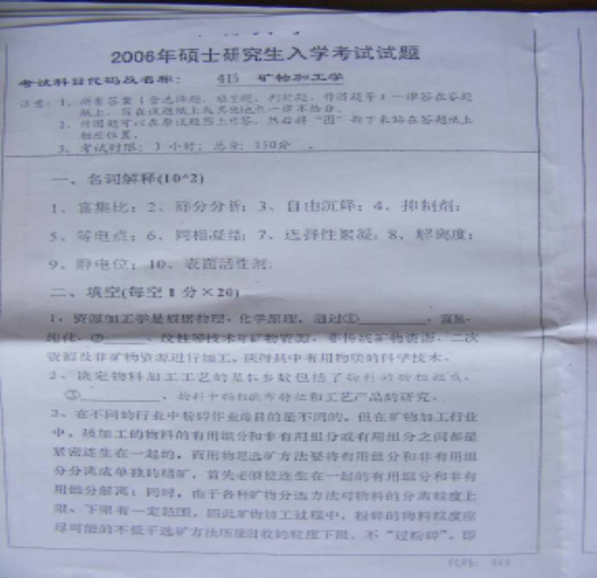 中南资源加工学考研真题资料下载,喜欢的朋友可以下载收藏!