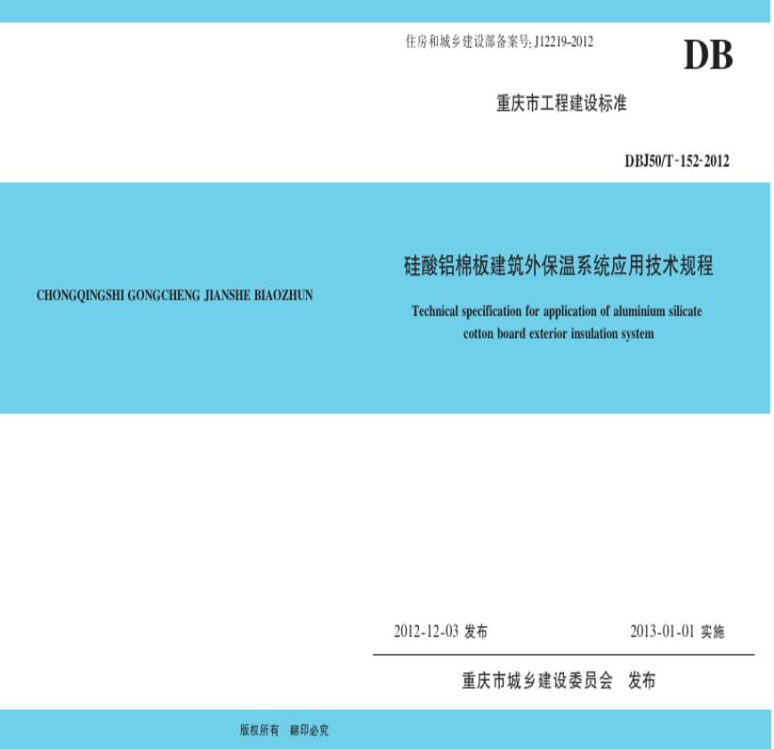> 《重庆市硅酸铝棉板建筑外保温系统应用技术规程》(DBJ50T-152-20