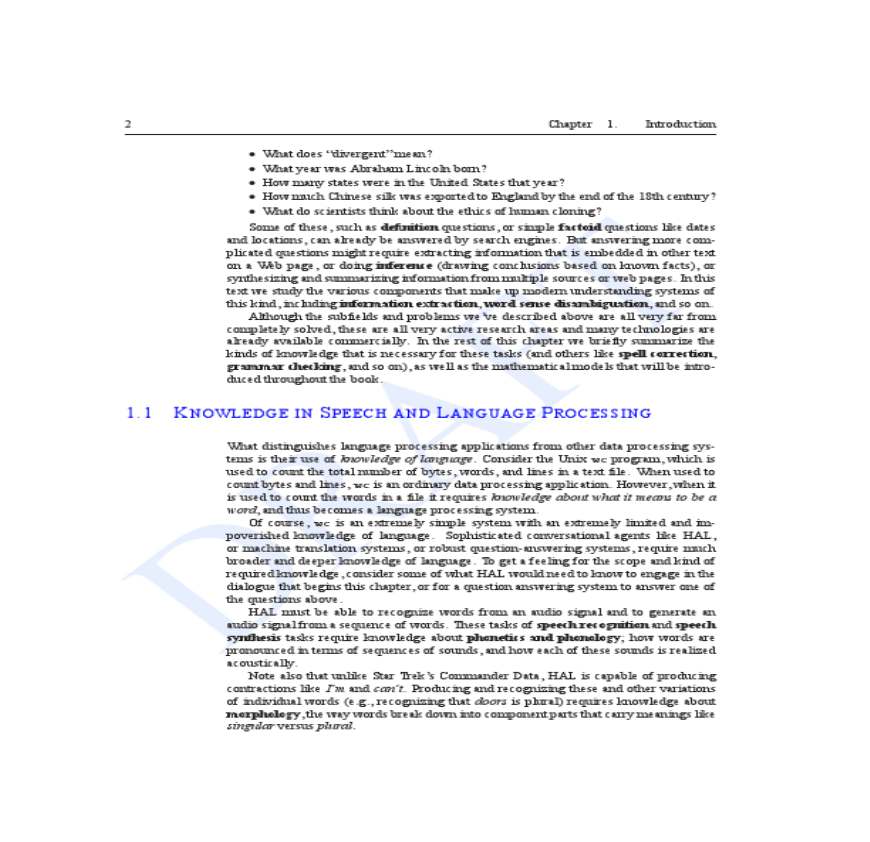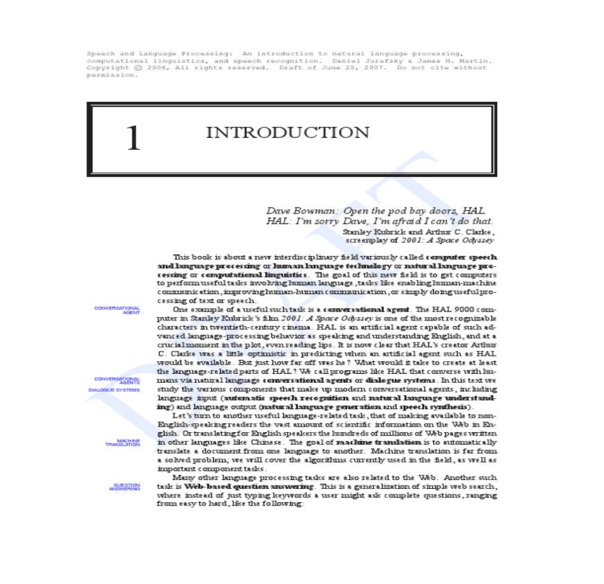 作者:DJr(D 朱夫斯凯), JH Mr(J H 马丁) :电子工业 时间:年月 第章导论 语音与语言处理中的知识 学习资料页 PDF 上传日期: :: 一个在职研究生的抽屉