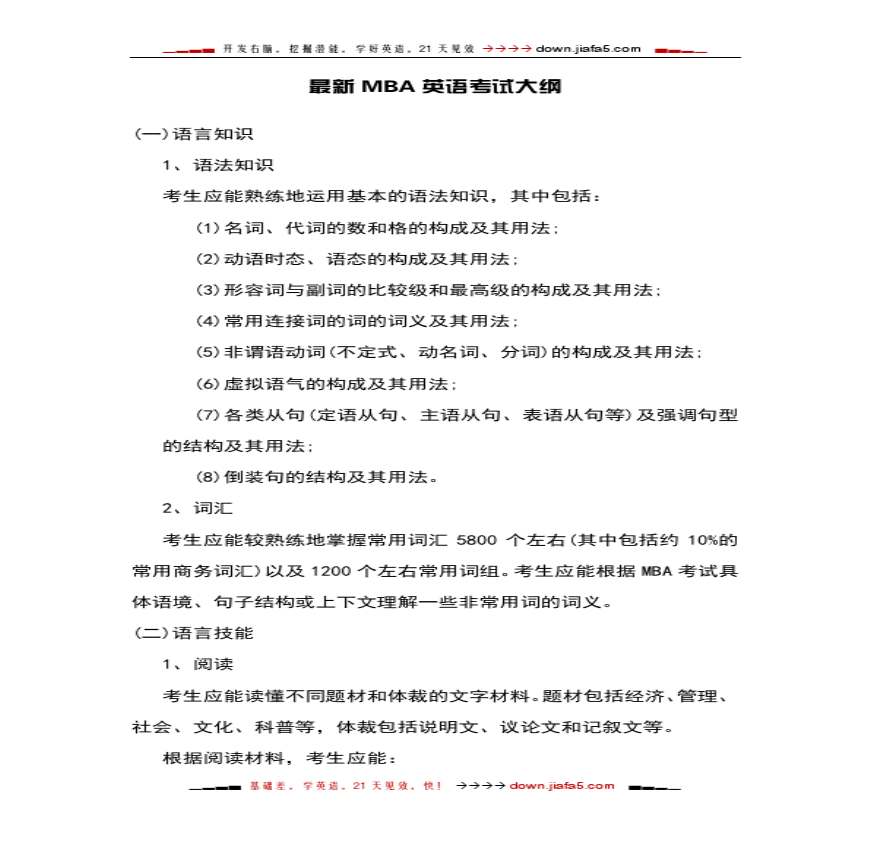 最新MBA英语考试大纲.pdf 免费下载