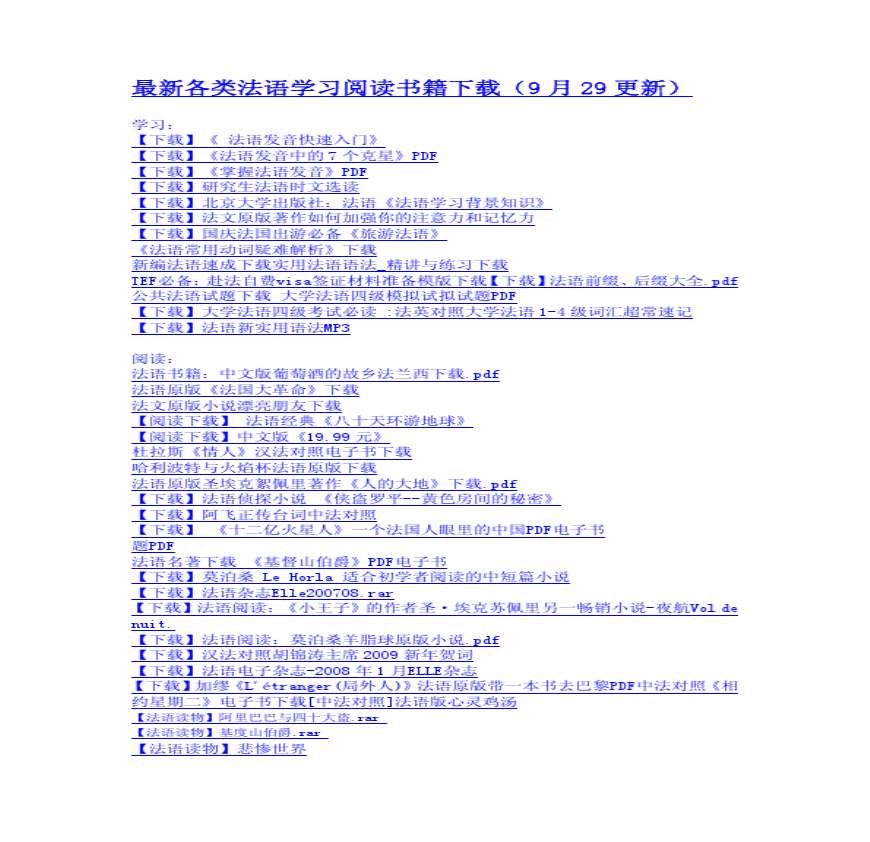 最新各类法语学习阅读书籍下载大汇总资料下载,喜欢的朋友可以下载收藏!