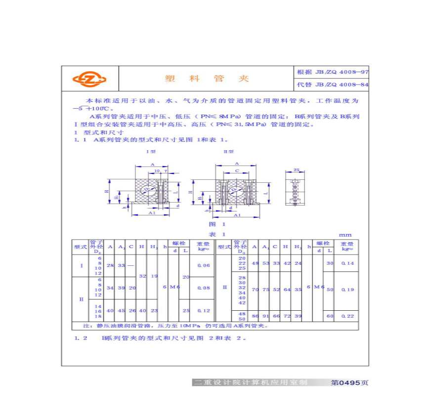 > 重型工业机械设计常用标准JB(ZQ)4008-97塑料管夹